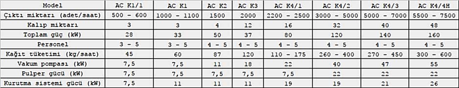 Aşağıdaki tabloda makinaların enerji ve eleman maliyetleri verilmiştir. Makinaları kullanacağınız sektöre göre, kalıp modellerini belirleyip sisteme entegre ediyoruz. Firmamız, aynı zamanda kalıp form makinası, ütü presi, baskı makinası, konveyör hatları ve sistem kurulum eğitimi ve yedek parça sağlamaktadır.